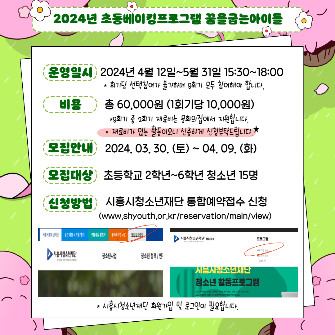 신청방법: 시흥시청소년재단 통합접수 로그인 후 프로그램 신청! (로그인필요)