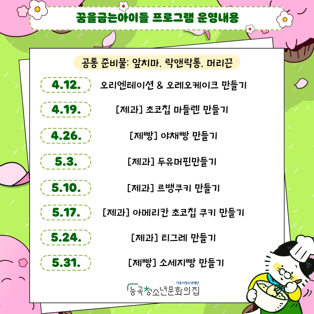 능곡청소년문화의집의 초등 제과제빵프로그램 꿈을굽는아이들의