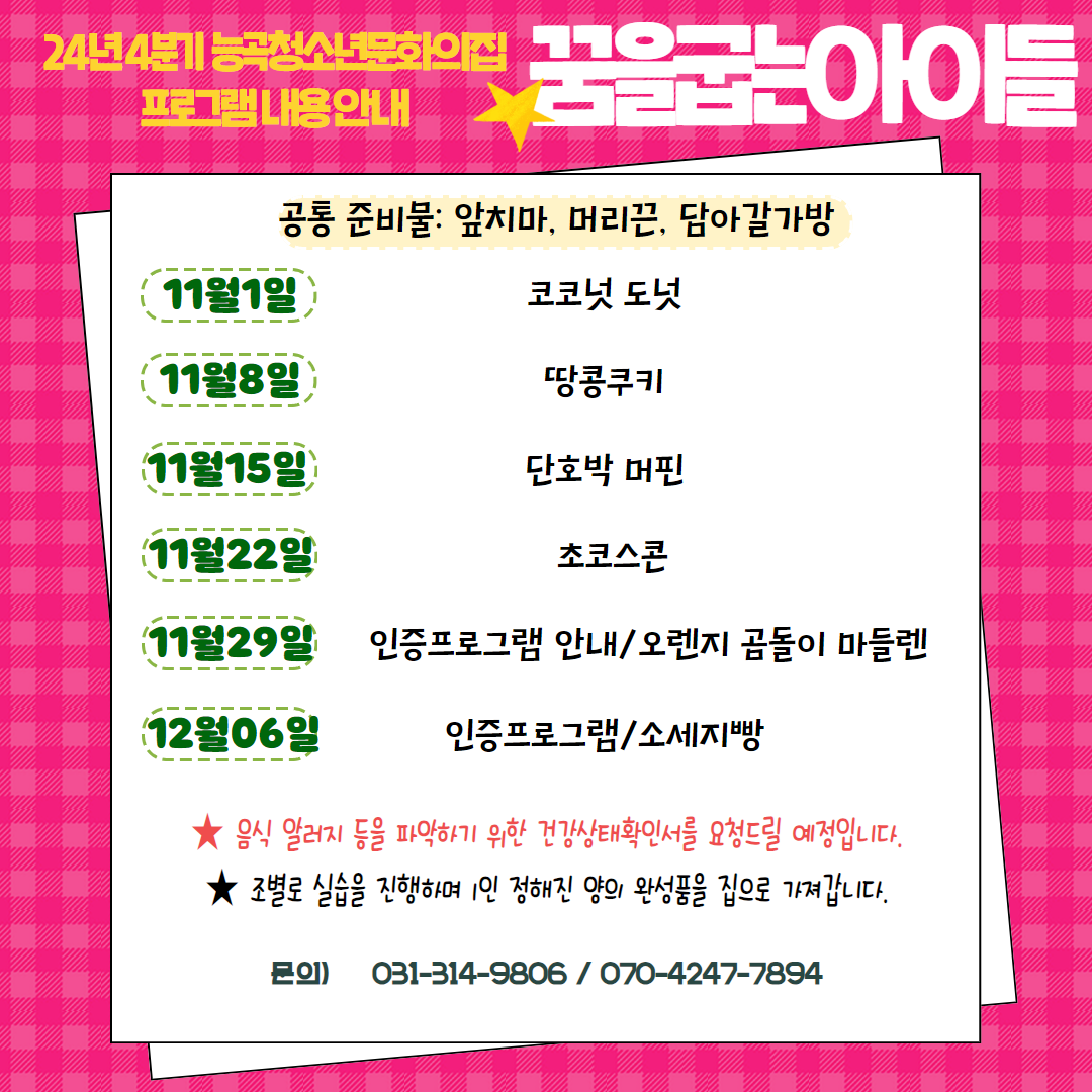 ♥문의: 031-314-9806 / 070-4247-7894 능곡청소년문화의집