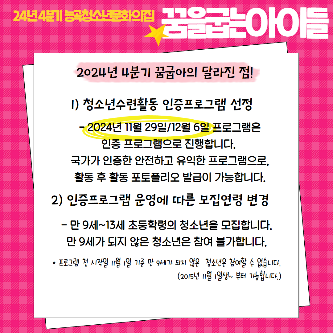 ♥프로그램 운영기간: 2024년 11월 1일 ~ 12월 6일 (매주금요일)