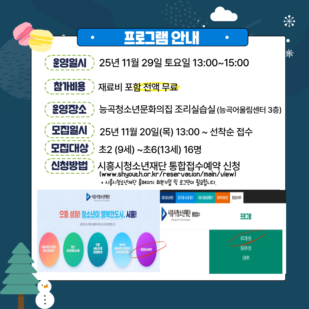 프로그램 장소: 능곡청소년문화의집 조리실습실 (경기도 시흥시 능곡로 140, 능곡어울림센터 3층)