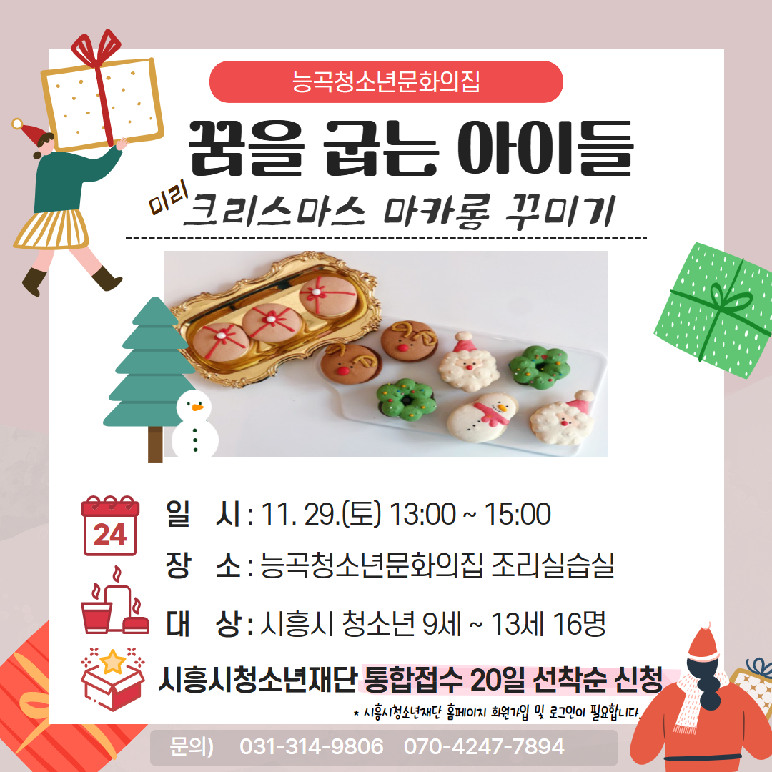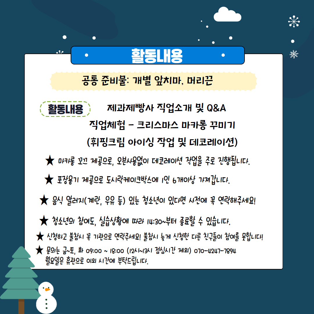 11월 29일(토) 13:00~15:00 제과제빵사 직업소개 및 직업체험(크리스마스 마카롱 꾸미기)