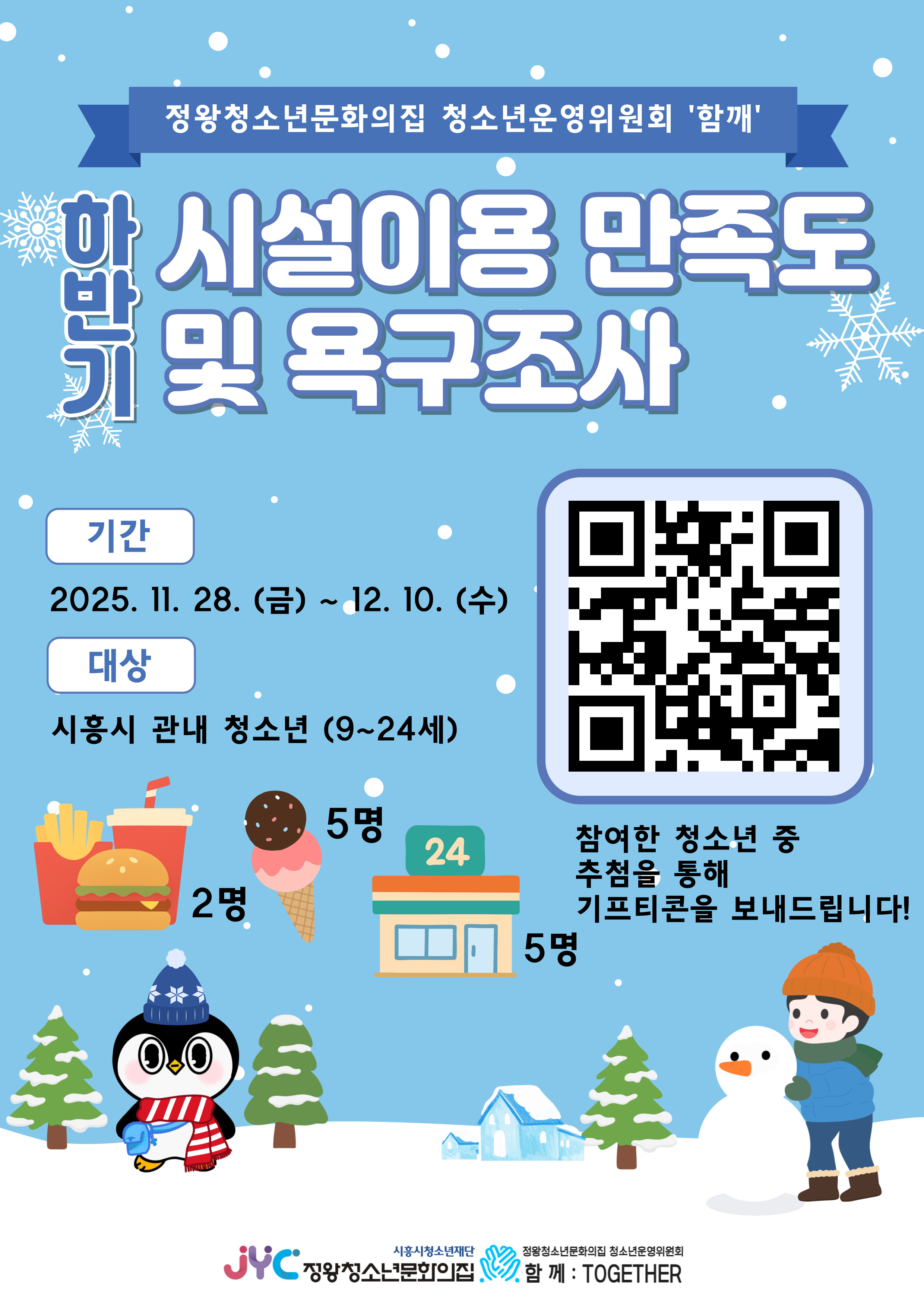 [안내] 정왕청소년문화의집 하반기 시설이용 만족도 및 욕구조사2025.11.28
