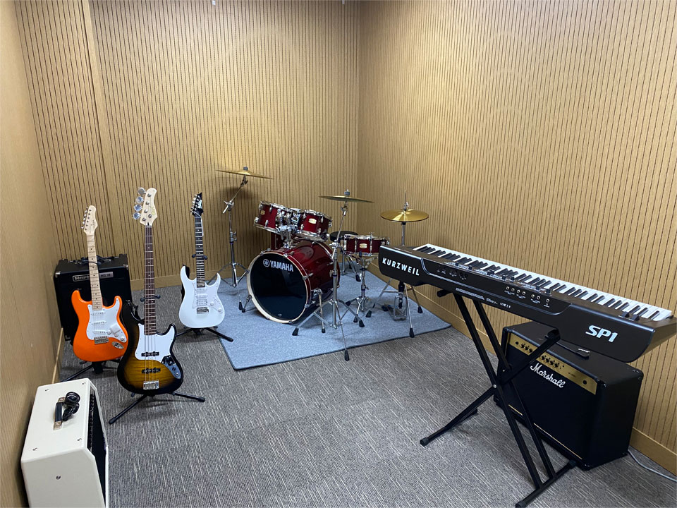 · 드럼, 키보드, 기타, 앰프 등 다양한 음향장비와 방음벽이 설치된 밴드 연습 공간 | 23.10 | 5명 | |
